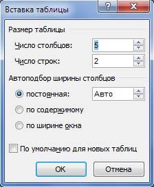 Этот способ осуществляется с помощью окна диалога "Вставка таблицы". Для применения этого метода надо выбрать из списка команду "Вставить таблицу" (рис. 10). Затем в появившемся окне диалога (Рис. 11) выбрать число столбцов и строк, выбрать ширину столбцов и нажать ОК.
