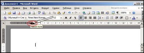 Для установки отступа первой строки, наведите указатель мыши на верхний маркер верхней линейки