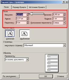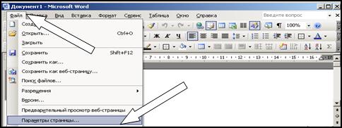 б) с использованием пункта «Параметры страницы» в меню «Файл»