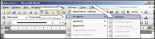 Для вставки таблицы выберите в строке главного меню кнопку «Таблица»