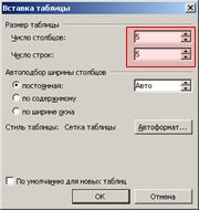 Нажмите левую кнопку мыши. Откроется окно – «Вставка таблицы».