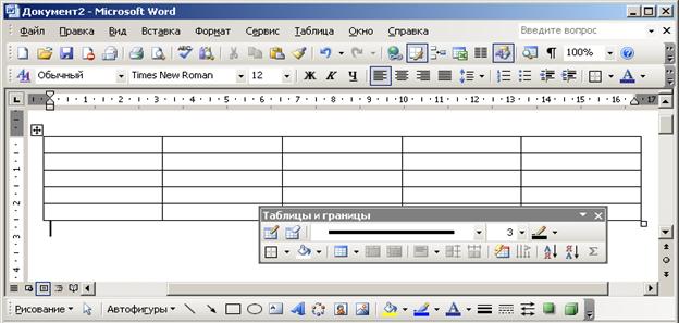В этом окне установите необходимые параметры (Число столбцов – 5, число строк – 5) и нажмите кнопку «ОК». На листе появится таблица и будет открыта панель инструментов «Таблицы и границы».