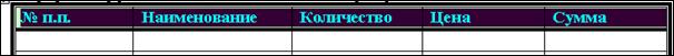 № п. п. | Наименование | Количество | Цена | Сумма |