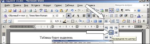 На панели инструментов «Таблицы и границы» выберите кнопку «Выравнивание»