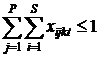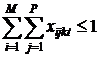 В заданный t- й час k- я аудитория может быть занята лишь одной i- й группой с j - м преподавателем, т. е.