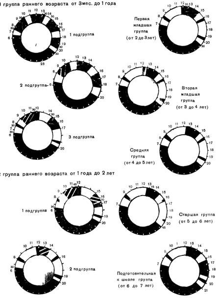 Таблица чХ. Схема режимов дня детей дошкольного возраста.