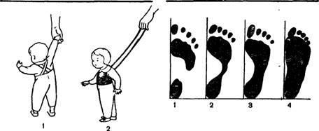 Развитию плоскостопия_способствует заболевание рахитом, общая слабость и пониженное физическое развитие, а также излиш-няя тучность, при которой на стопу постоянно действует чрезмерная весовая нагрузка. У детей, преждевременно (до 10—12 месяцев) начинающих много стоять и передвигаться на ножках, развивается плоскостопие. Вредно сказывается на формировании стопы длительное хождение детей по твердому грунту (асфальту) в мягкой обуви без каблучка.