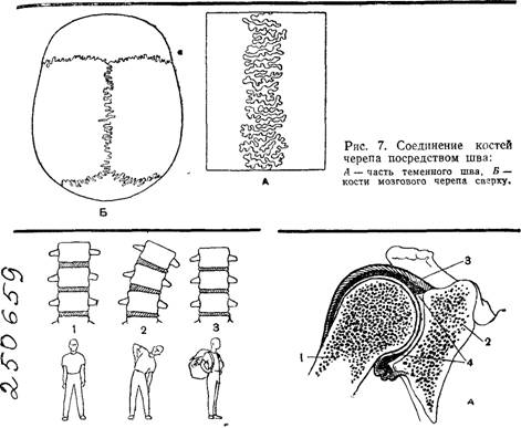 ^ ~" Соединения костей. Соединения костей бывают неподвижные, малоподвижные и подвижные, или суставы.