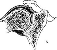 Рис. 9. Плечевой сустав в разрезе при опущенной (Л) и поднятой (б) руке: