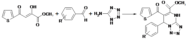 Принимая во внимание значительный практический интерес к указанным гетероциклическим соединениям, следует отметить, что их химические свойства, в особенности способность к формированию конденсированных гетероциклических систем, изучены недостаточно. В литературе имеются сведения о синтезе тетразолопиримидинов на основе реакции эфиров ацетоуксусных и ароилпировиноградных кислот со смесью ароматического альдегида и 5-аминотетразола.