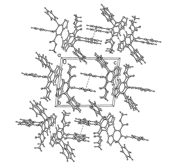 Рис.2. Фрагмент молекулярной упаковки метилового эфира 7-фенил-6-(2-тиеноил)-4,7-дигидротетразоло[1,5-а]пиримидин-5-карбоновой кислоты