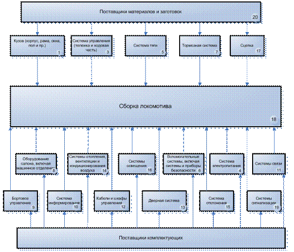 В качестве примера такого сложного проекта рассмотрим производство локомотива, которое четко разделено на несколько уровней (рисунок 1):