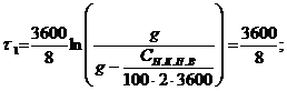 Тогда время образования локального взрывоопасного облака, занимающего 5 % объема цеха при работе вентиляции, будет равно
