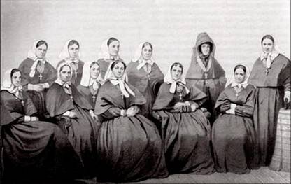 Сестры милосердия тех лет — отнюдь не то же самое, что медсестры в современном понимании. Девицы и вдовы "хорошего происхождения" в возрасте от 20 до 40 лет (девушки ради служения делу отказывались от вступления в брак) могли войти в общину только после испытательного 2-летнего срока по уходу за больными Затем они проходили специальное обучение в учреждениях Красного Креста. Работали безвозмездно, получая от общины лишь еду и одежду.