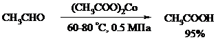 Окисление уксусного альдегида в промышленности осуществляют действием кислорода в присутствии солей кобальта или марганца в качестве катализатора: