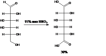 Применяя разбавленную азотную кислоту, осуществляют окисление альдегидной группы, не затрагивая присутствующей в молекуле вторичной спиртовой группы, однако первичная спиртовая группа при этом окисляется в карбоксильную: