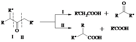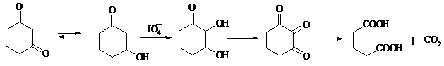 Циклические 1,3-дикетоны, которые существуют в основном в моноенольной форме, расщепляются периодатом натрия NaIO4 с потерей одного атома углерода: