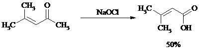 Метилкетоны легко превращаются в соответствующие карбоновые кислоты при обработке их щелочными растворами гипобромита или гипохлорита натрия, т. е. смесью галогена и щелочи (галоформная реакция). Таким образом из окиси мезитила можно, например, получить b, b-диметилакриловую кислоту: