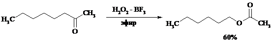 Наилучшие результаты достигаются при расщеплении алифатических и циклических кетонов комплексом 90%-ного пероксида водорода и эфирата трехфтористого бора:
