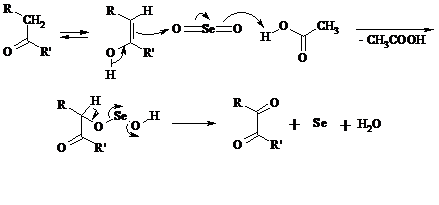 Для реакции окисления кетонов, а также альдегидов диоксидом селена был предложен следующий механизм: