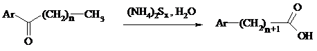 Под действием раствора полисульфида аммония (как правило, под давлением) арилалкилкетоны превращаются в ω-арилкарбоновые кислоты с сохранением общего числа атомов углерода (реакция Вильгеродта):