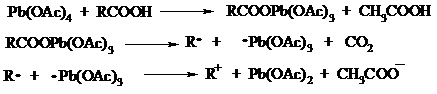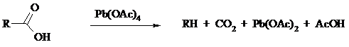 Карбоновые кислоты подвергаются окислительному декарбоксилированию под действием тетраацетата свинца и в качестве продуктов в зависимости от условий получаются алканы, алкены или эфиры уксусной кислоты: