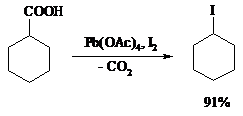 В присутствии иода и тетраацетата свинца карбоновые кислоты превращаются в соответствующие иодиды: