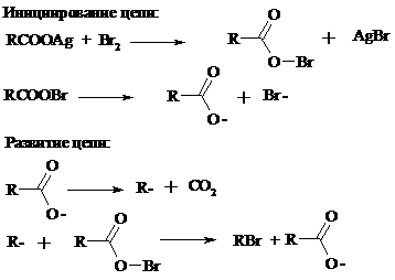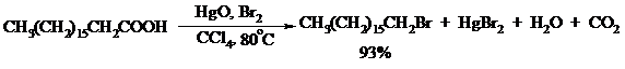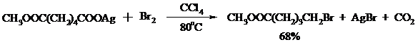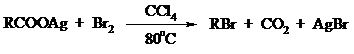 Другим примером окислительного декарбоксилирования может служить окисление серебряных солей карбоновых кислот бромом в CCl4 с образованием алкилбромидов (реакция Хунсдиккера – Бородина):
