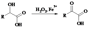 В то же время при использовании пероксида водорода в присутствии Fe(III) удается окислить гидроксильную группу в a-гидроксикислотах в карбонильную с сохранением карбоксильной: