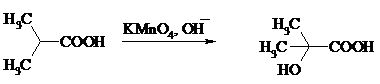 Окислить алифатические карбоновые кислоты в α-гидроксикислоты удается в том случае, если кислота содержит третичный атом углерода в α-положении к карбоксильной группе. В качестве окислителя применяют щелочной раствор KMnO4.
