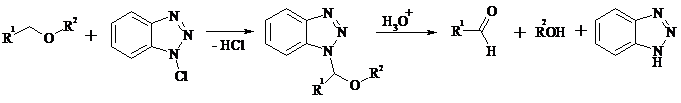 Под действием 1-хлорбензотриазола простые эфиры подвергаются окислительному расщеплению в альдегиды: