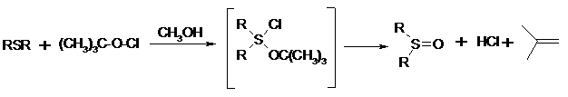 Превращение сульфидов в сульфоксиды под действием трет-бутилгипохлорита можно проиллюстрировать следующим примером: