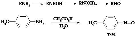 Первичные амины окисляются намного сложнее, поскольку образующееся производное гидроксиламина может далее окисляться до нитрозосоединений:
