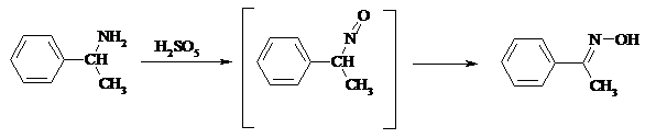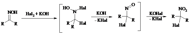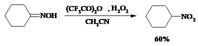 Окисление оксимов кетонов с помощью трифторперуксусной кислоты в ацетонитриле приводит к нитросоединениям. Первоначально при окислении оксимов образуется аци-форма нитросоединения, которая в кислой среде изомеризуется в нитросоединение:
