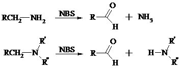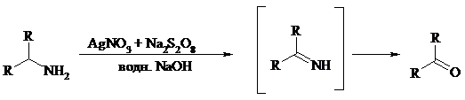 Первичные алифатические амины окисляются в альдегиды или кетоны при взаимодействии с Ag(II), полученным in situ обработкой нитрата серебра персульфатом натрия. Амин сначала дегидрируется до имина, который далее подвергается гидролизу: