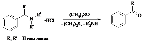 Соли бензиламинов дают бензальдегиды или арилкетоны при нагревании в ДМСО: