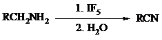Дегидрирование первичной аминогруппы, соединенной с первичным атомом углерода, приводит к образованию нитрилов. Реакция осуществлена под действием ряда реагентов: IF5, Pb(OAc)4, CuCl – O2 – пиридин, NBS – (С2H5)3N и др.
