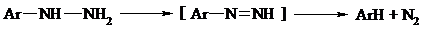 Гидразины (как алкильные, так и арильные), монозамещенные только с одной стороны, также дают азосоединения, однако последние неустойчивы и разлагаются на азот и углеводород: