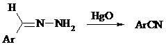 Гидразоны ароматических альдегидов взаимодействуют с HgO в таких растворителях, как диглим или этанол, давая нитрилы: