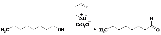 К суспензии 32.3 г (0.15 моль) хлорхромата пиридиния в 200 мл безводного дихлорметана при тщательном перемешивании в один прием прибавляют 13 г (0.1 моль) октанола-1, растворенного в 20 мл дихлорметана. Смесь перемешивают при комнатной температуре 1.5 ч.