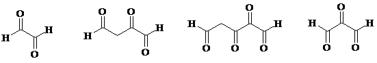 4. Из каменноугольной смолы выделен углеводород состава С9Н8, который взаимодействует с водным раствором брома с образованием дибромида С9H8Br2; вступает в реакцию с озоном в мольном соотношении 1:4, образуя тетраозонид; при восстановительном гидролизе последнего получены следующие вещества: