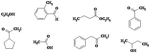 7. Какие из приведенных ниже соединений будут подвергаться галоформному расщеплению под действием I2 в присутствии водного раствора Na2CO3: