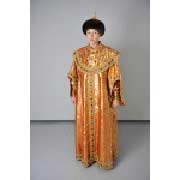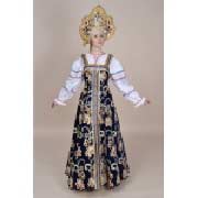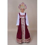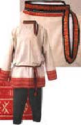 в) использование домотканой, а позднее фабричной ткани, отделка вышивкой, кружевом, шитьём, мехом, тканью другого цвета; создание динамичной формы костюма за счет использования контрастных цветов;