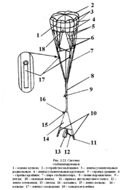 Состоит из купола со стропами и стабилизатора с парашютным звеном.