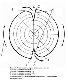 нижней кромки купола и 0,4 м от пряжек-полуколец свободных концов подвесной системы, обозначающих начало и конец укладки.