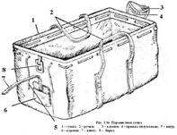 Ранец изготовлен из капронового авизента или капроновой ткани и состоит из основы, накладного дна, правого и левого клапанов. Между основным и накладным дном вставлена рама жесткости.