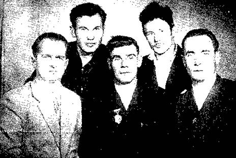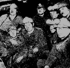 Начальник шахты №3 , механик участка , горный мастер (в центре) и председатель шахткома (фамилия ещё одного горняка не установлена).