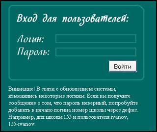 В результате будет открыта страница с формой для авторизации (рисунок 1), в которой требуется ввести в поля «Логин» и «Пароль» индивидуальные данные пользователя с системной ролью «Ученик» («Родственник»). В зависимости от настроек конкретного интернет-обозревателя данные авторизации сохраняются в полях, и при последующем входе их вводить уже не требуется.
