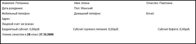 Аналогичным образом осуществляется просмотр данных о питании учащихся. Нажатие по ссылке