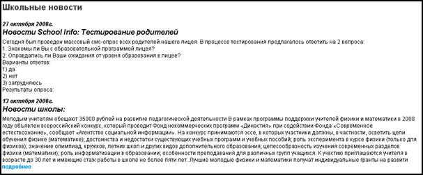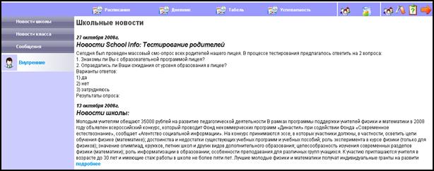 Ø рассылка E-Mail сообщений родственникам учеников с информацией об оценках, посещаемости занятий и домашних заданиях;